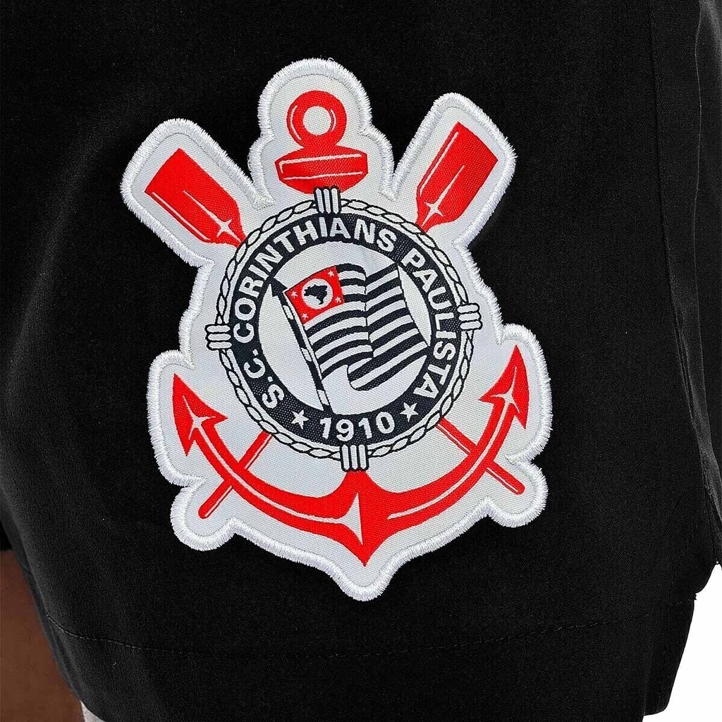 O escudo do Timão vem bordado com alto padrão, trazendo autenticidade e orgulho à bermuda.