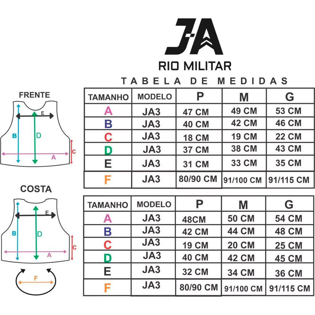 • Colete produzido em diversos tamanhos;