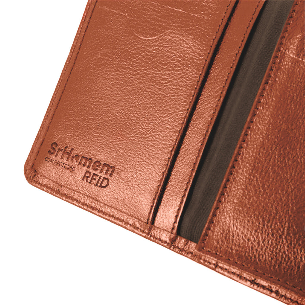 Moderna e utilitária, a Carteira 620 ajuda a manter seus pertences organizados e protegidos contra os novos golpes que clonam dados através da leitura de RFID. Essa segurança é garantida graças à tecnologia de blindagem de alumínio que está presente nas tramas de poliéster do forro. Além disso, traz composição em couro de espessura fina e acabamento polido, que garante maior durabilidade contra os desgastes do tempo e, também, ajuda a valorizar a estética. Ou seja, é a nova queridinha do público masculino que preza pela inovação!