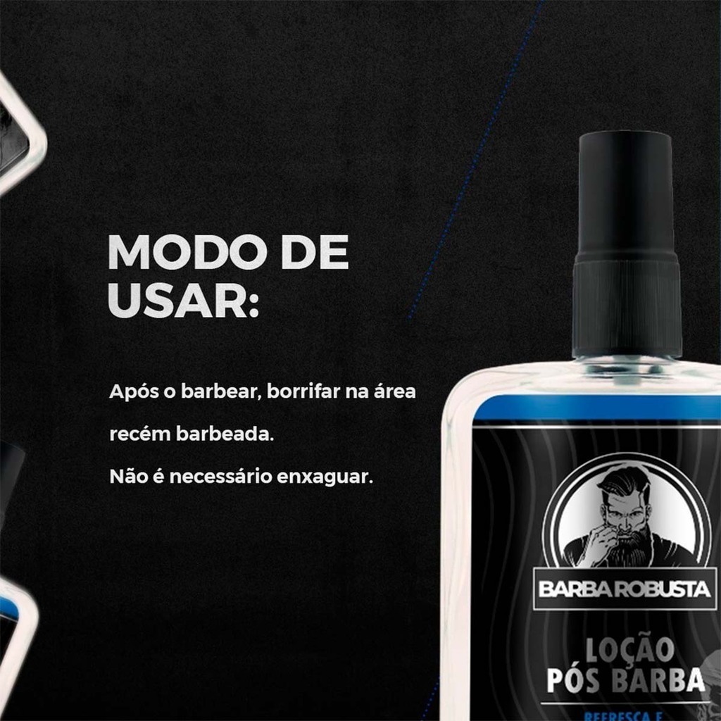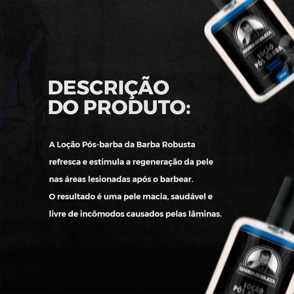 Com a Loção Pós Barba Refresca e Regenera da Barba Robusta, você pode manter a sua pele sempre suave, hidratada e protegida após o barbear, realçando a sua masculinidade e autoconfiança. Experimente hoje mesmo e descubra o poder de uma pele bem cuidada.