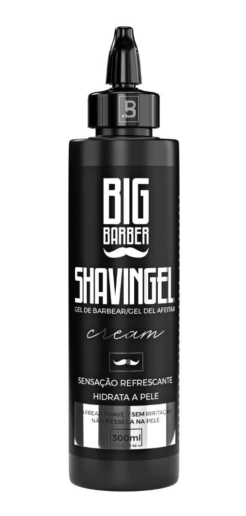 O shaving gel de barbear em Bisnaga BIG BARBER Cream profissional 300ml proporciona uma sensação refrescante a pele. Foi desenvolvido para dar praticidade ao profissional e proteger a pele do cliente contra as irritações e efeitos agressivos do barbear.