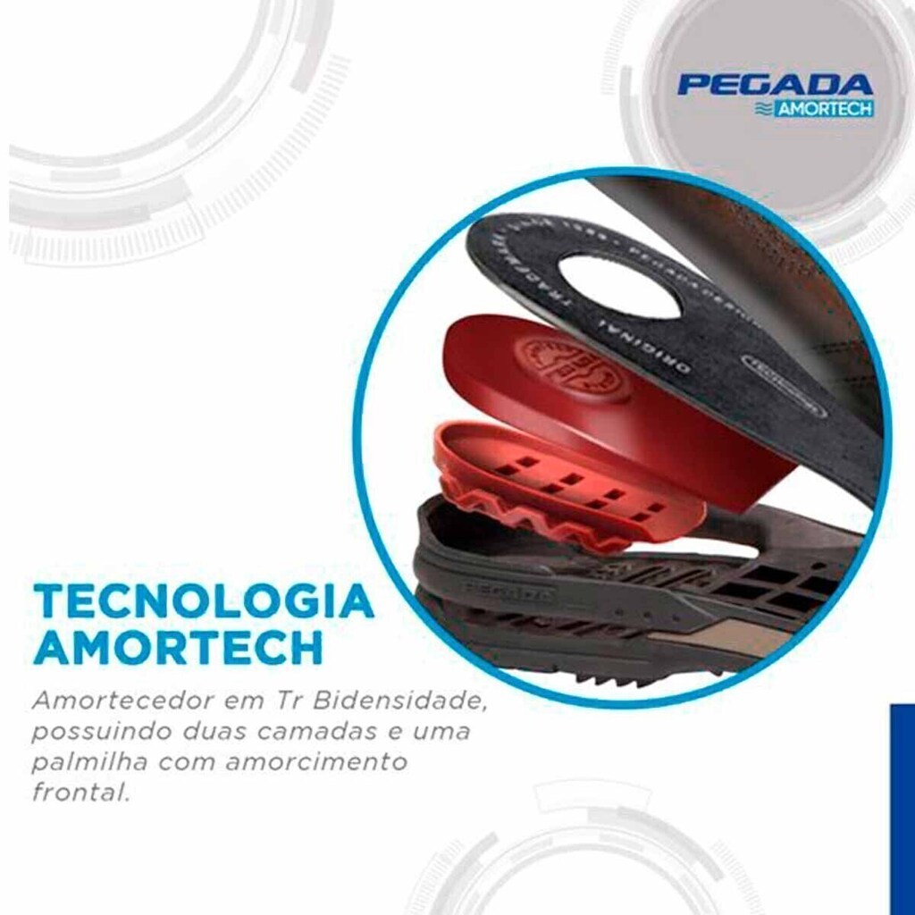 Os tênis da linha Gold são fabricados em couro, matéria prima de alta qualidade, que confere resistência e durabilidade ao calçado. O forro em tecido espumado garante o conforto e a absorção de suor, características necessárias para manter o pé seco e arejado. Possui a Tecnologia AMORTECH de amortecimento na região do calcanhar, tanto na palmilha, com amortecedor em PU macio, quanto através da sola, que é de Tr Bidensidade, possuindo duas camadas, que proporcionam estabilidade e conforto ao caminhar, além de ser antiderrapante e de alta flexibilidade. Além de tudo isso ainda conta com o sistema “Calce Fácil”, zíper na lateral e cadarço em elástico que é super prático de calçar e não precisa ser amarrado.